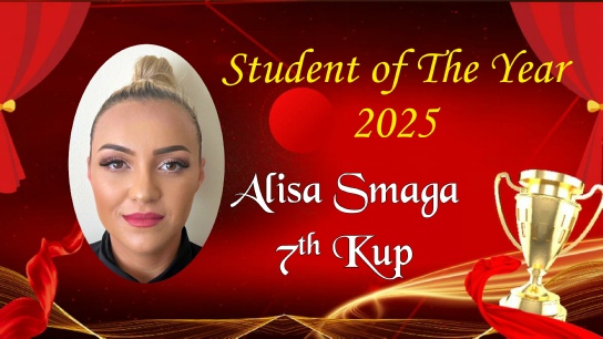 Alisa joined the school in April 2025 and has already reached the grade of 7th Kup, she has shown an incredible aptitude towards her training and has eagerly strived for improvement.
